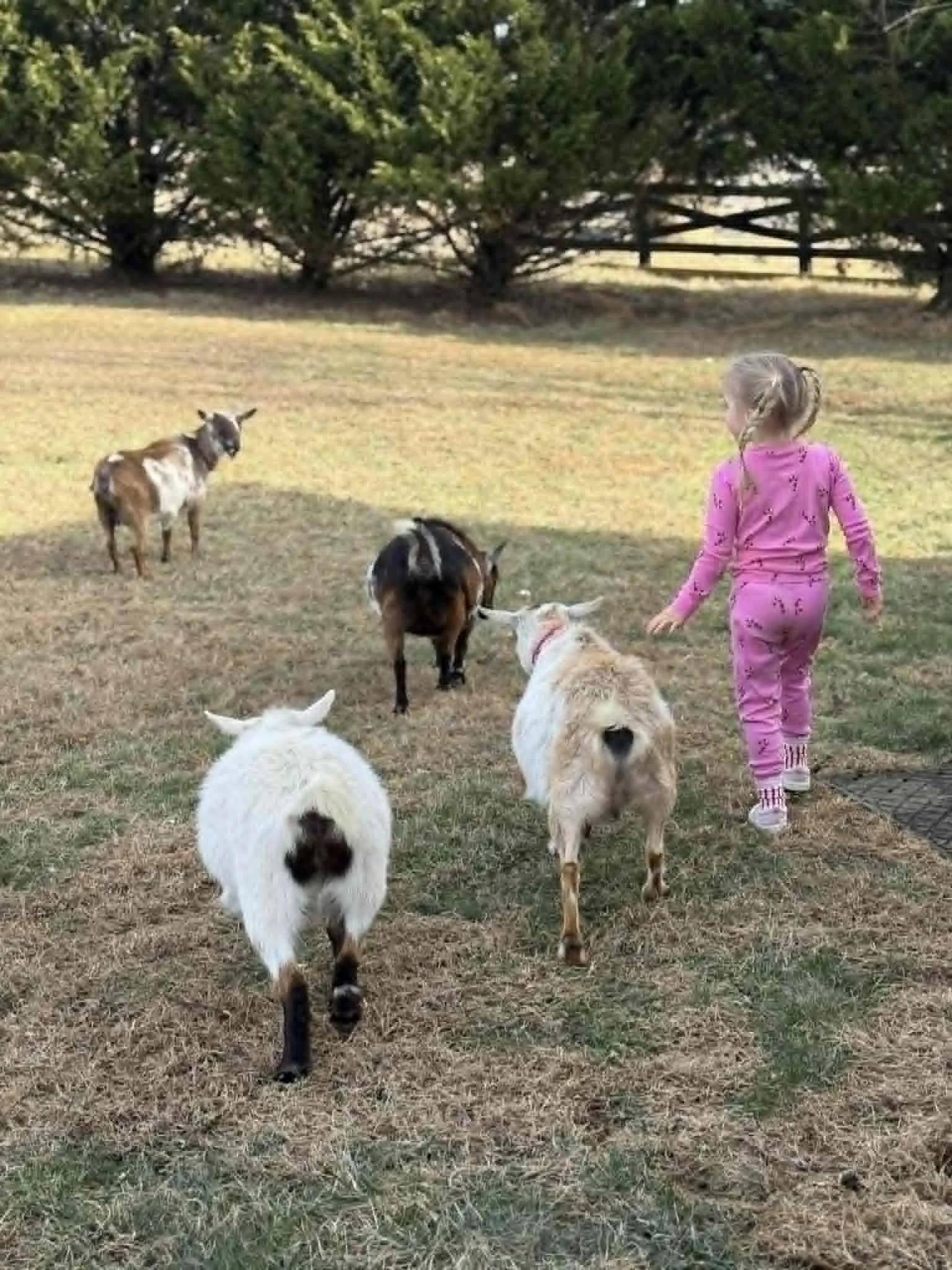 All goat kids born on our farm are bottle raised, which helps ensure they grow into friendly, well-socialized animals that are comfortable around people. Early socialization plays an important role in their development and makes routine management much easier. This approach helps when direct care is needed, such as hoof trimming, vaccinations, health checks, and other routine livestock management practices, allowing the animals to be handled safely while reducing stress for both the goats and the handler.